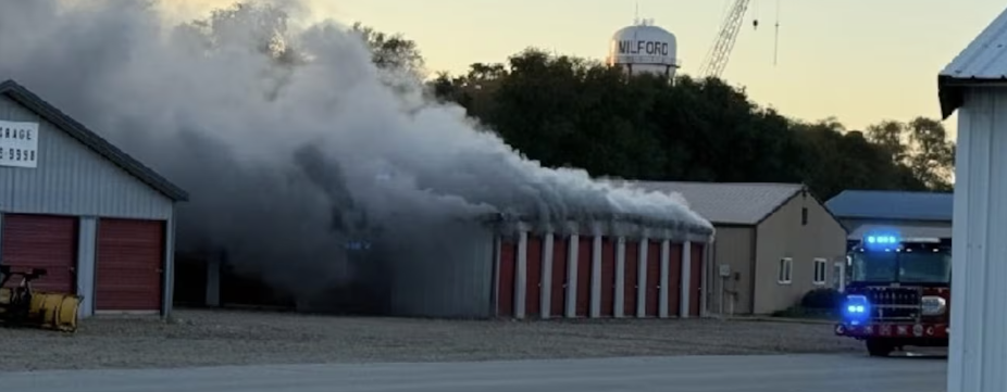 A multi-unit fire broke out around 7:30 a.m. at A‑1 Storage (1600 block of P Ave., near the Iowa Great Lakes). Heavy smoke and fire spread fast due to the open-nature of the building. Investigators believe a generator behind the building, which was being used to charge several batteries inside one unit, caused the fire. Source: KTIV.com
