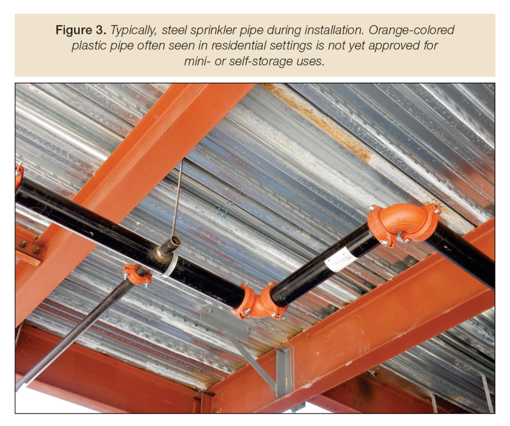 A ready and reliable water source is the key to successful sprinkler operation. Without getting too scientific, there must be enough water to absorb a fire’s heat to keep it under control. If the water supply is not adequate or runs dry, the fire will grow exponentially. In many mini- or self-storage buildings that have no fire-rated walls between units, a common outcome is a total loss of property and contents.