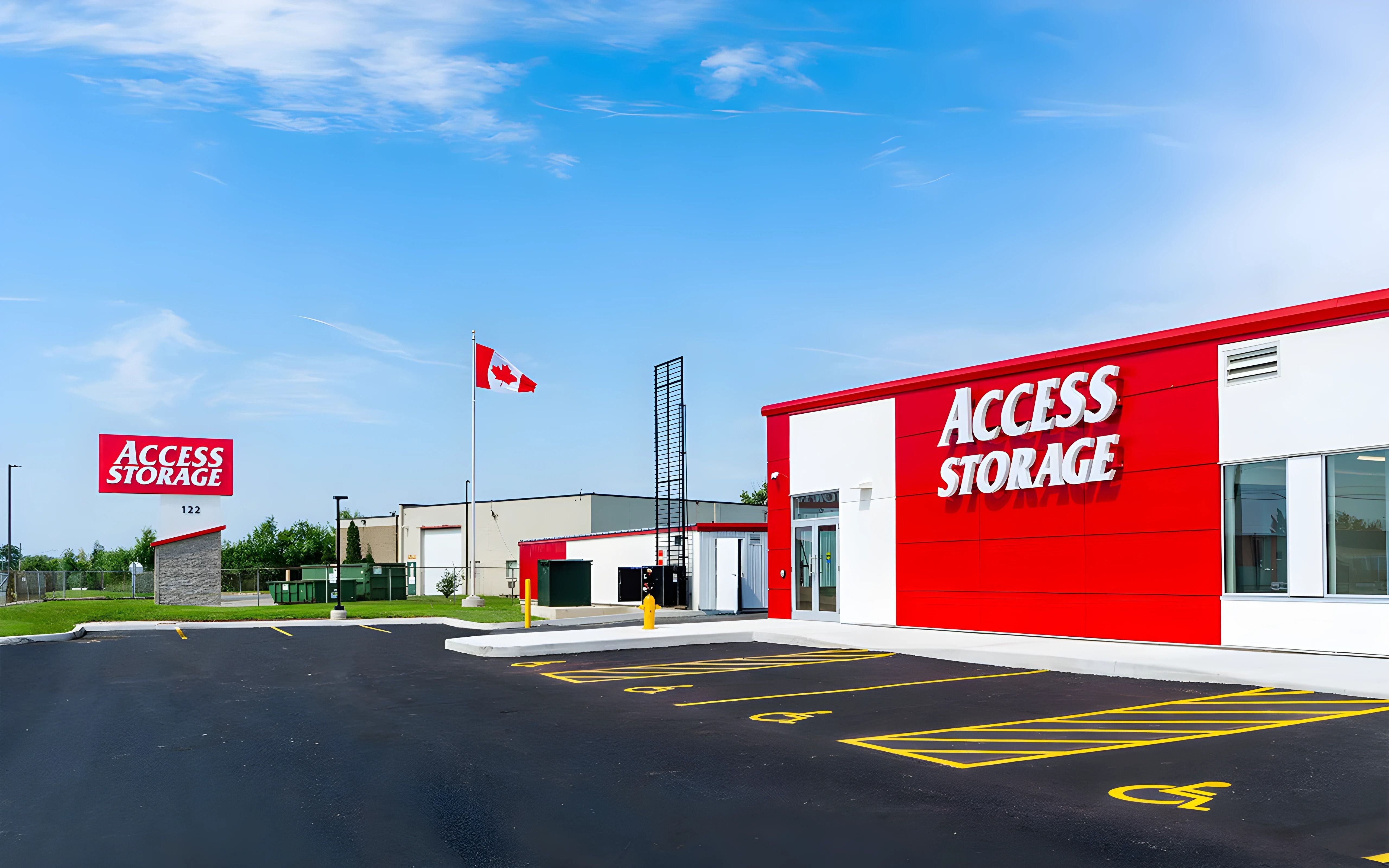 To make this Access Storage facility a standout in the community, in line with Deerfield’s vision, Hulme says the facility has eye-catching red and white composite panels, reflective of the Canadian flag which now flies high alongside the facility. The colors show Canadian pride and enhance curb appeal.